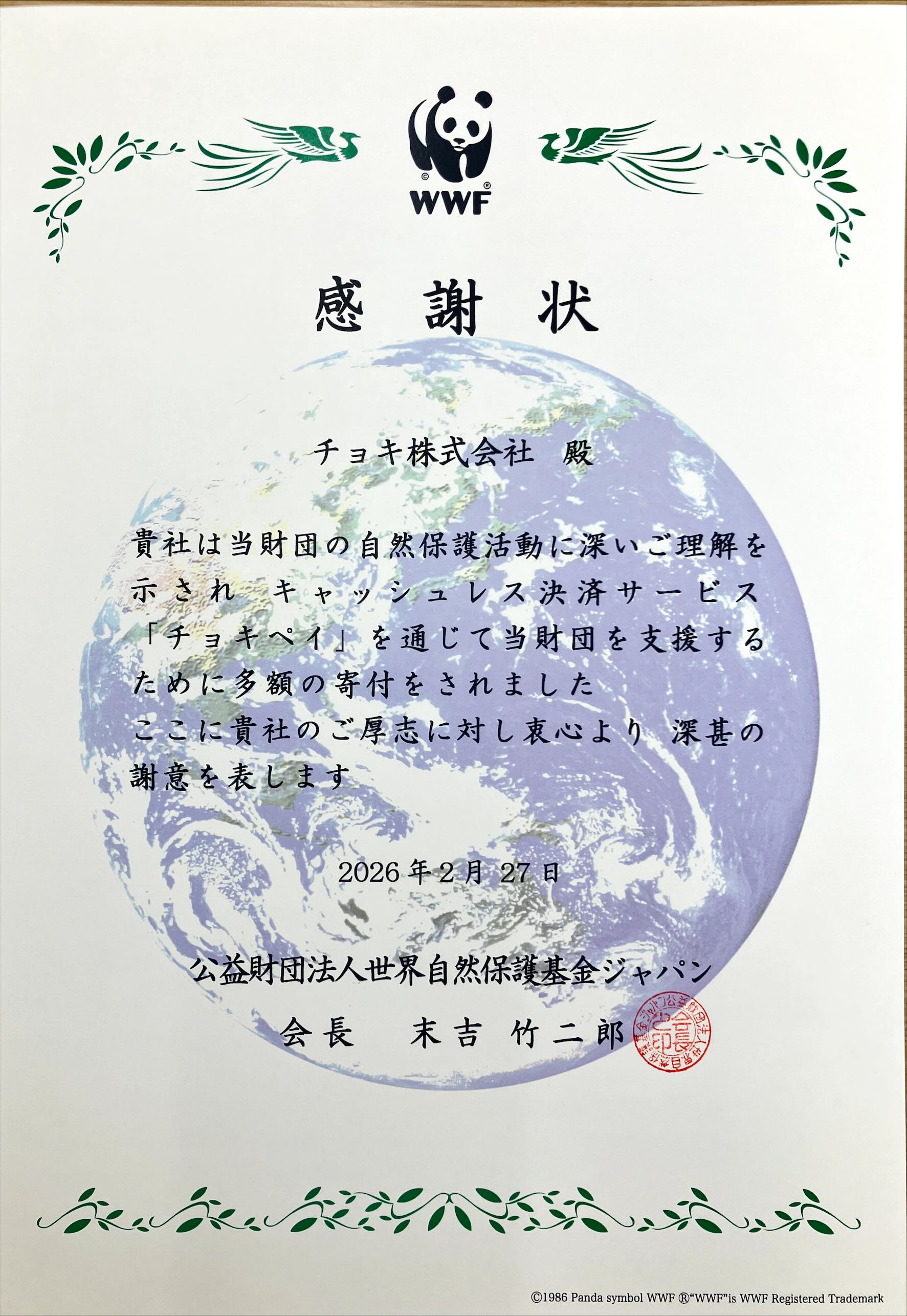 2026.04.10 2025年度 WWFジャパンへ寄付を行いました
